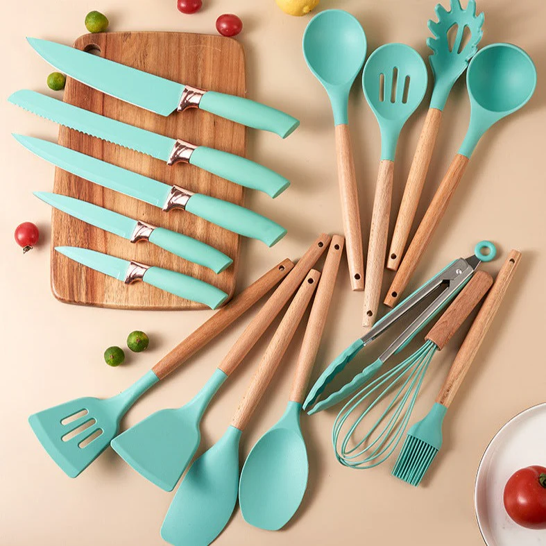 19 PCs Silicon Cooking & Knife Set (random color)