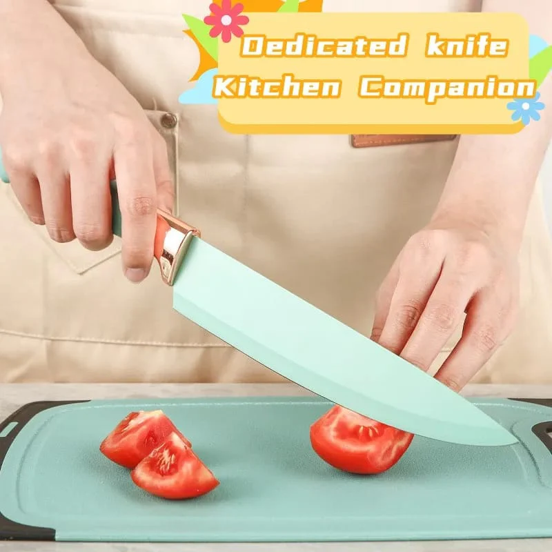 - [Comprehensive Utensil Selection]: Utensil Set includes everything you need to ease your cooking, like chef knife, slicing knife, bread knife, utility knife, fruit knife, spatula, slotted spatula, deep soup ladle, shallow soup ladle, colander, pasta spoon, flat spatula, scraper, basting brush, eggbeater, food tongs, chopping board, scissors and cutter holder, which fully satisfies your daily cooking need.